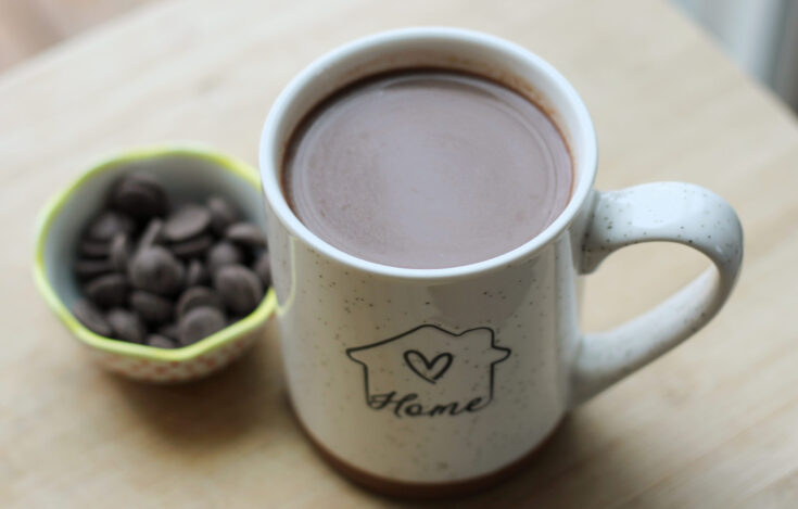 This recipe is also healthier because it uses real food ingredients. Have you ever looked at the ingredients on those packets of hot cocoa mixes? There are all sorts of additives and preservatives and unhealthy fats like hydrogenated oils. Corn syrup is often used as the main sweetener. Food companies also like to add emulsifiers to hot cocoa mixtures.